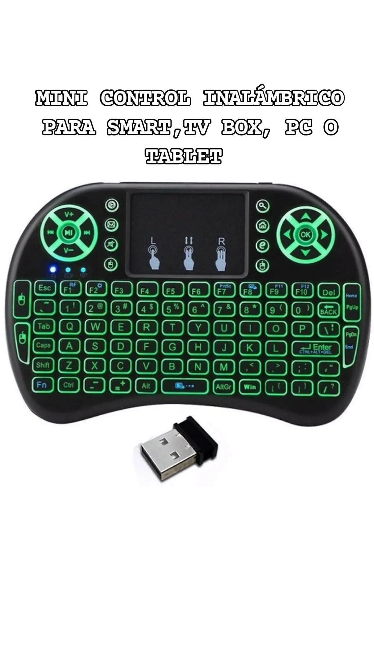 Mini teclado inalambrcio 2.4Ghz retroiluminado ideal para Smart TV y TV Box.